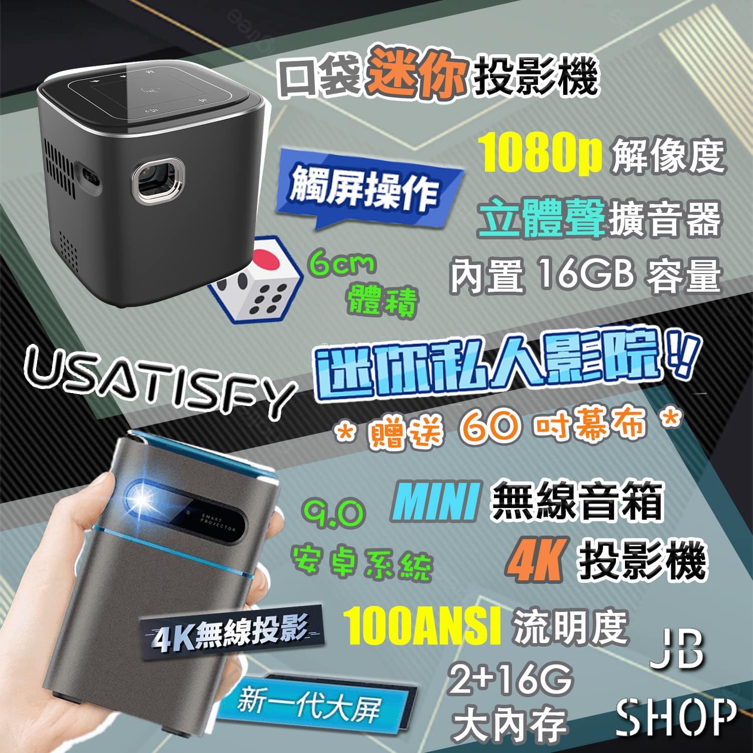 美國 USATISFY 4K家用DLP口袋迷你投影機
