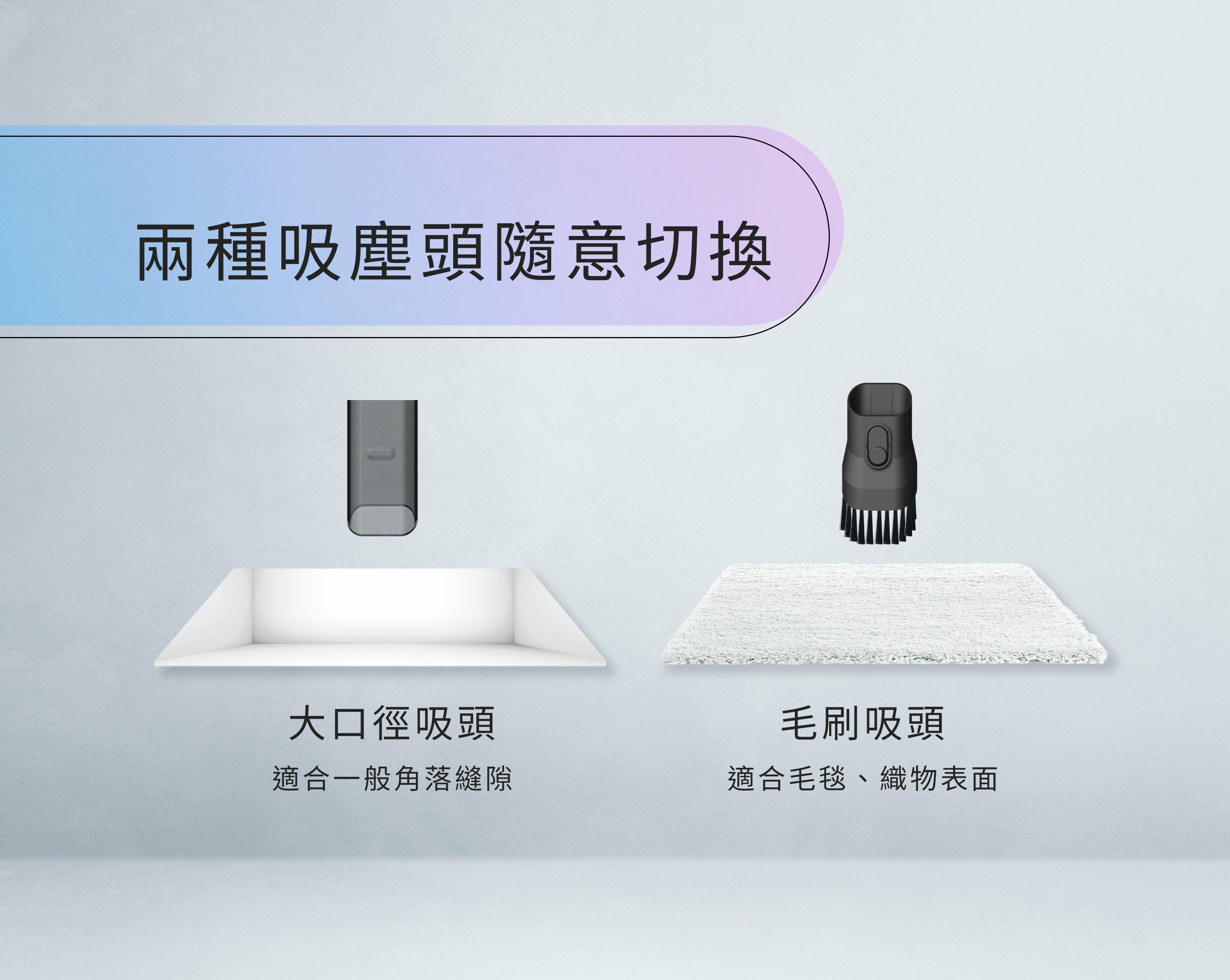 兩檔吸塵模式:一檔吸附落塵毛髮,二檔清潔大顆粒雜質。